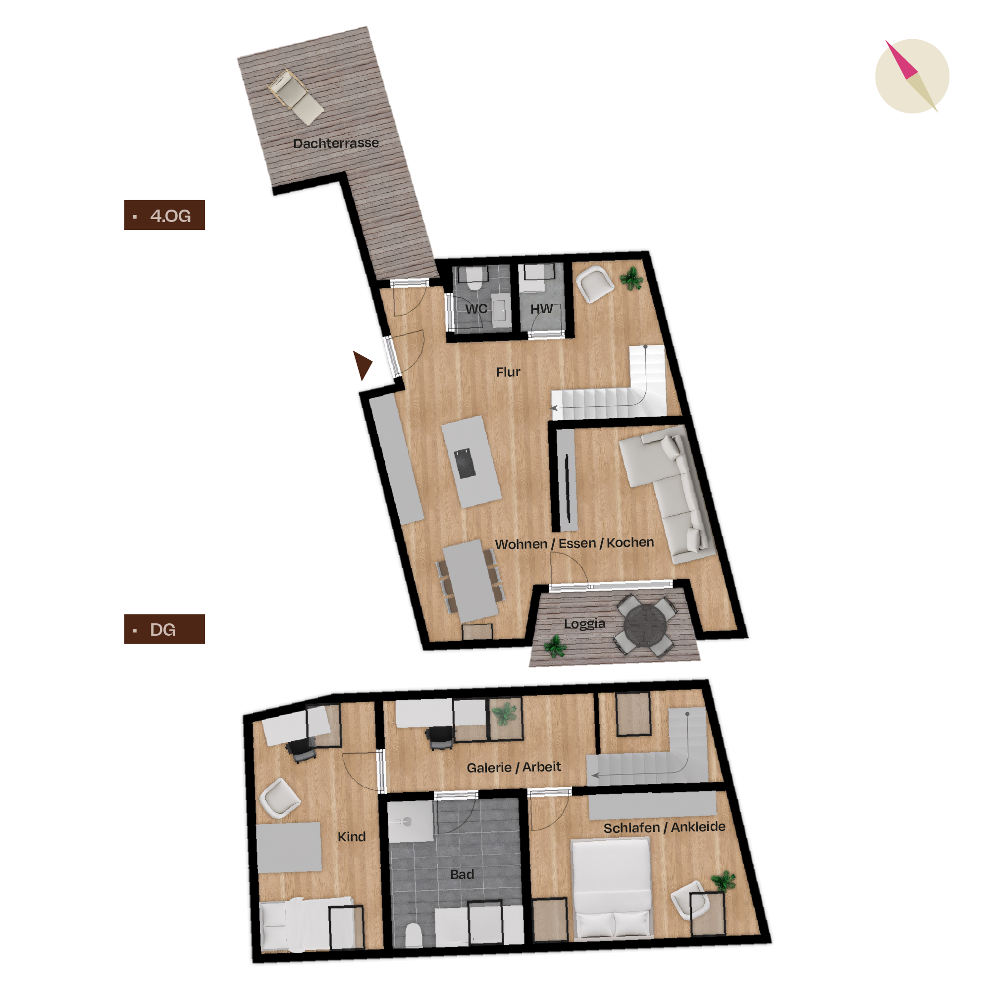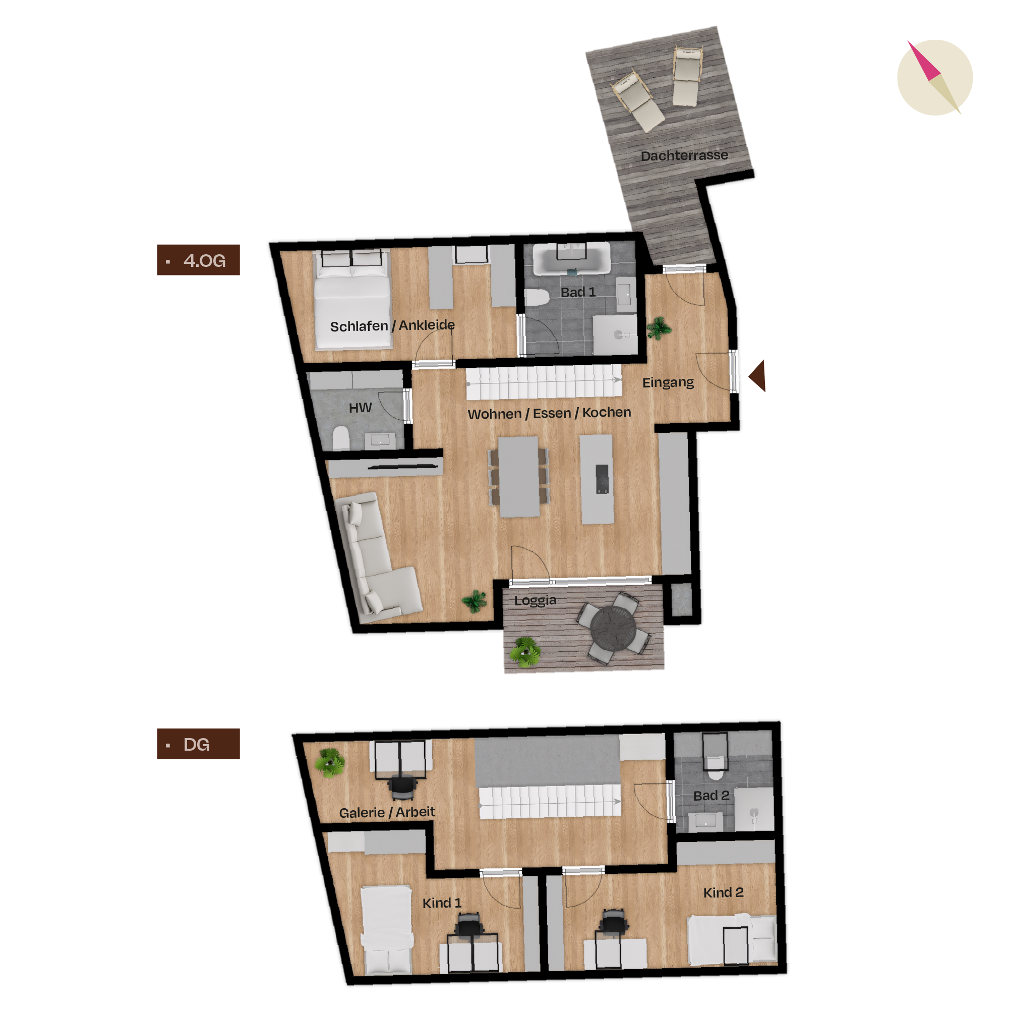 4. & 5. OG, 122,8 m²Penthouse-Maisonette Nr. 164,5 Zimmer mit Dachterrasse & Loggia: 4. & 5. OG, 122,8 m²